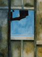 My studio is on the top of an old disused mill in East Belfast. Over the last two years I have become interested in its high windows and the vantage point they offer over the city. In many of the windows the panes of glass are broken and have been heavily taped over by the various occupants of the building in a series of make do repairs. This sequence of paintings examines the effect of the changing light conditions on the interior spaces of the mill and on the city beyond the windows. I have become conscious of the fact that the light will continue to transfigure the landscape and the decaying building when I am no longer a witness. Additionally within the paintings the taping has become a metaphor for the bandaging of wounds, a reference to events during the building's hundred-year history. |